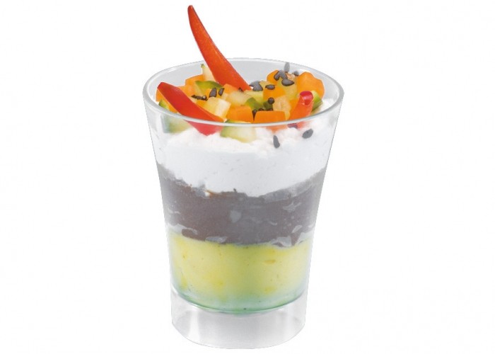 Bezbarwny kubek do serwowania przekąsek typu finger food, deserów oraz małych porcji potraw to doskonałe rozwiązanie dla osób, które chcą w efektowny sposób zaprezentować jedzenie. Transparentny materiał pięknie eksponuje warstwy deserów, sałatek czy przystawek, dzięki czemu każda kompozycja wygląda wyjątkowo estetycznie i nowocześnie.