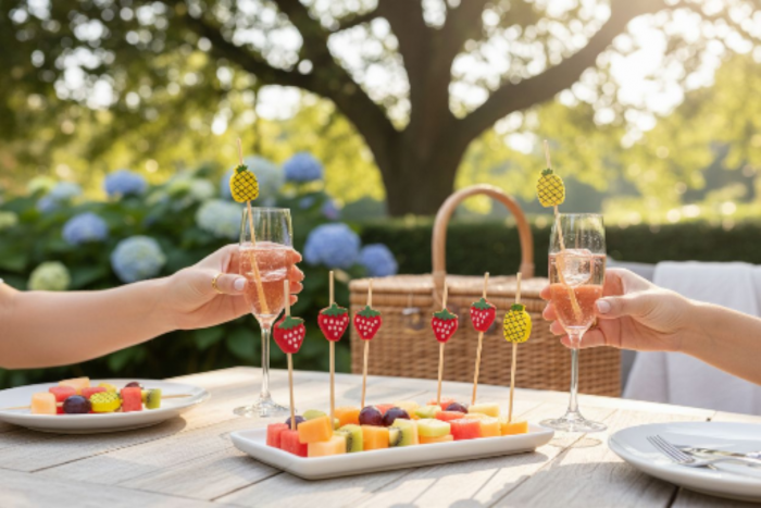 Kolorowe wykałaczki dekoracyjne Papstar z aplikacją owoców to idealny dodatek do serwowania przekąsek, koreczków, owoców i deserów. Wyposażone w ozdobne elementy w kształcie ananasa i truskawki, wprowadzą radosny, letni akcent na każdym przyjęciu, imprezie plenerowej czy spotkaniu w gronie znajomych.