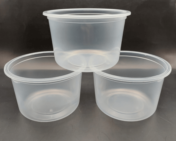 Bezbarwne pojemniki do żywności o średnicy 115 mm wykonane z trwałego polipropylenu (PP) to praktyczne rozwiązanie do dań zimnych i gorących. Idealnie nadają się do sałatek, surówek, zup oraz potraw na wynos, zapewniając bezpieczne przechowywanie i estetyczną prezentację zawartości. Materiał PP jest odporny na temperaturę, a pojemniki można dodatkowo zgrzewać, co ułatwia szczelne pakowanie produktów.
