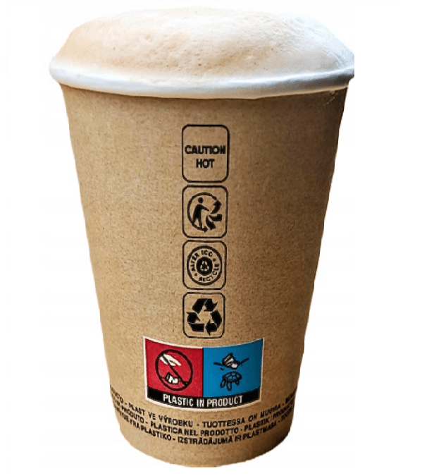 Produkt przeznaczony do kontaktu z żywnością, wykonany z pulpy drzewnej, dzięki czemu nadaje się w 100% do recyklingu. Należy jednak pamiętać, że kubki zawierają w swojej strukturze warstwę tworzywa sztucznego (powłoka zabezpieczająca przed przeciekaniem), przez co mogą podlegać opłacie SUP zgodnie z obowiązującymi przepisami.