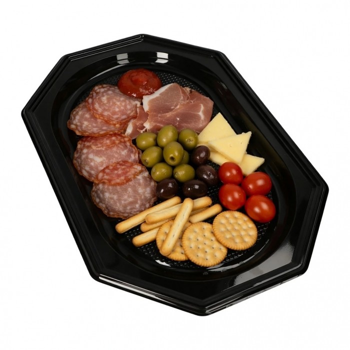 Czarne tace cateringowe to praktyczne rozwiązanie do serwowania i transportu posiłków na wynos. Wykonane z trwałego, lekkiego materiału, zapewniają wygodę podczas transportu i estetyczną prezentację dań. Idealne do gastronomii, cateringu, restauracji oraz domowych przyjęć.