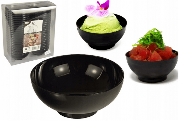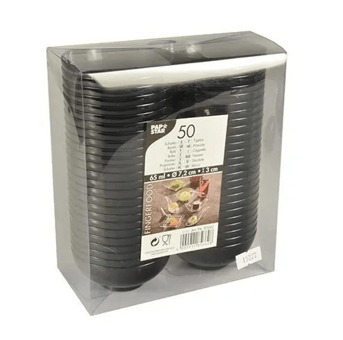 Stylowe pojemniki finger food w formie czarnej miseczki to profesjonalne rozwiązanie do nowoczesnego serwowania przekąsek, deserów oraz mini porcji degustacyjnych. Minimalistyczny, elegancki design doskonale podkreśla wygląd potraw, nadając im ekskluzywny charakter — idealny na eventy, catering oraz przyjęcia okolicznościowe.