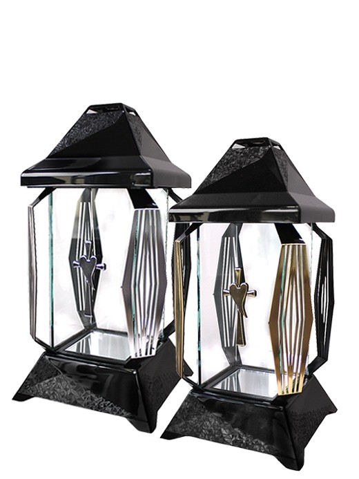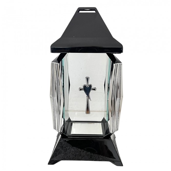 Znicz kapliczka Verso Mała to elegancki i trwały model w formie kapliczki, wykonany ze szkła i tworzywa, idealny na cmentarz przez cały rok.